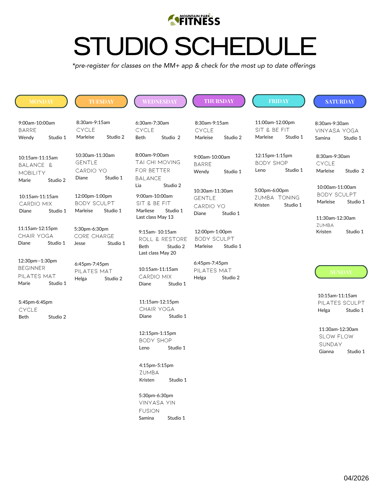 Fitness & Aquatics Schedules